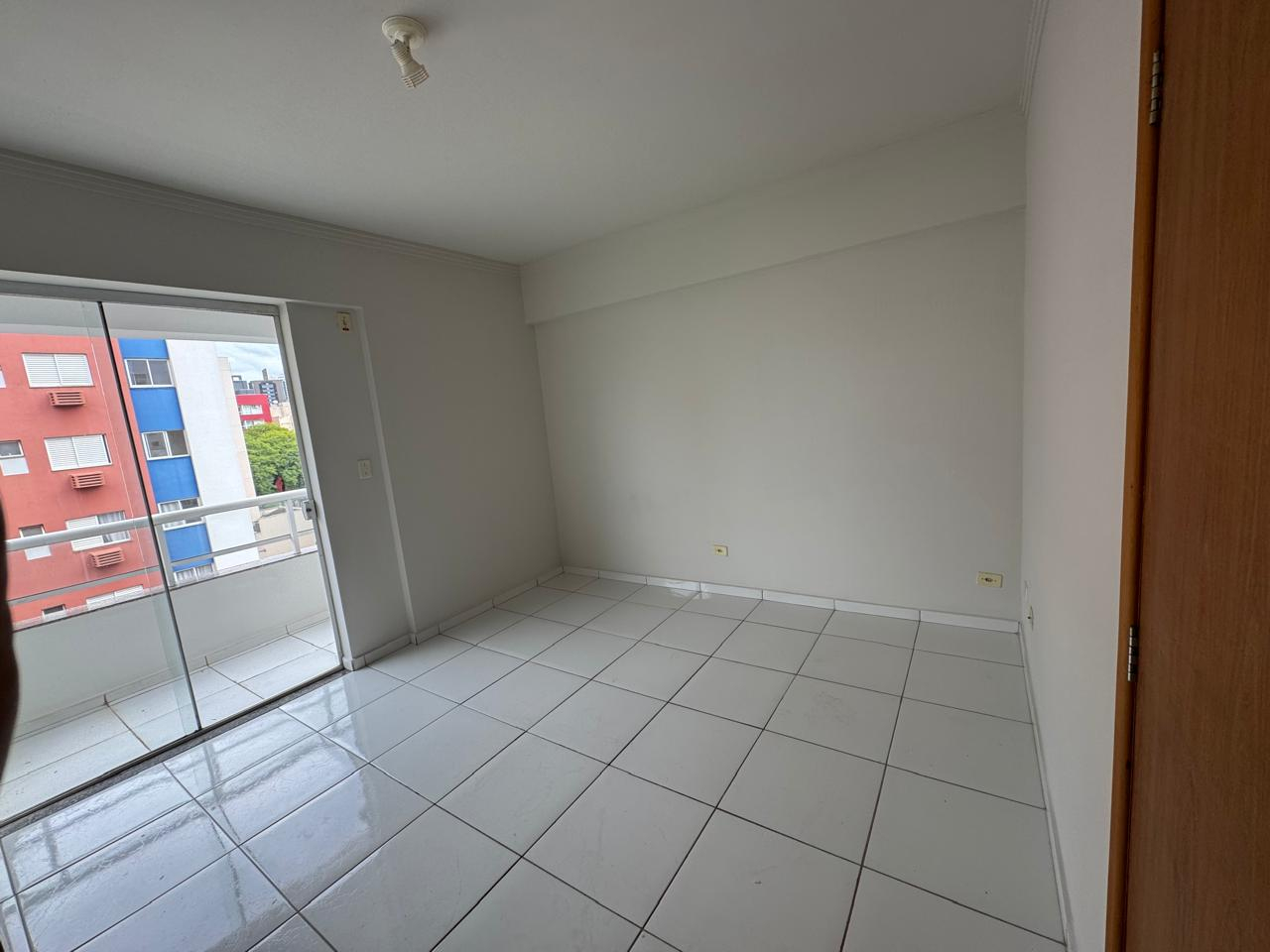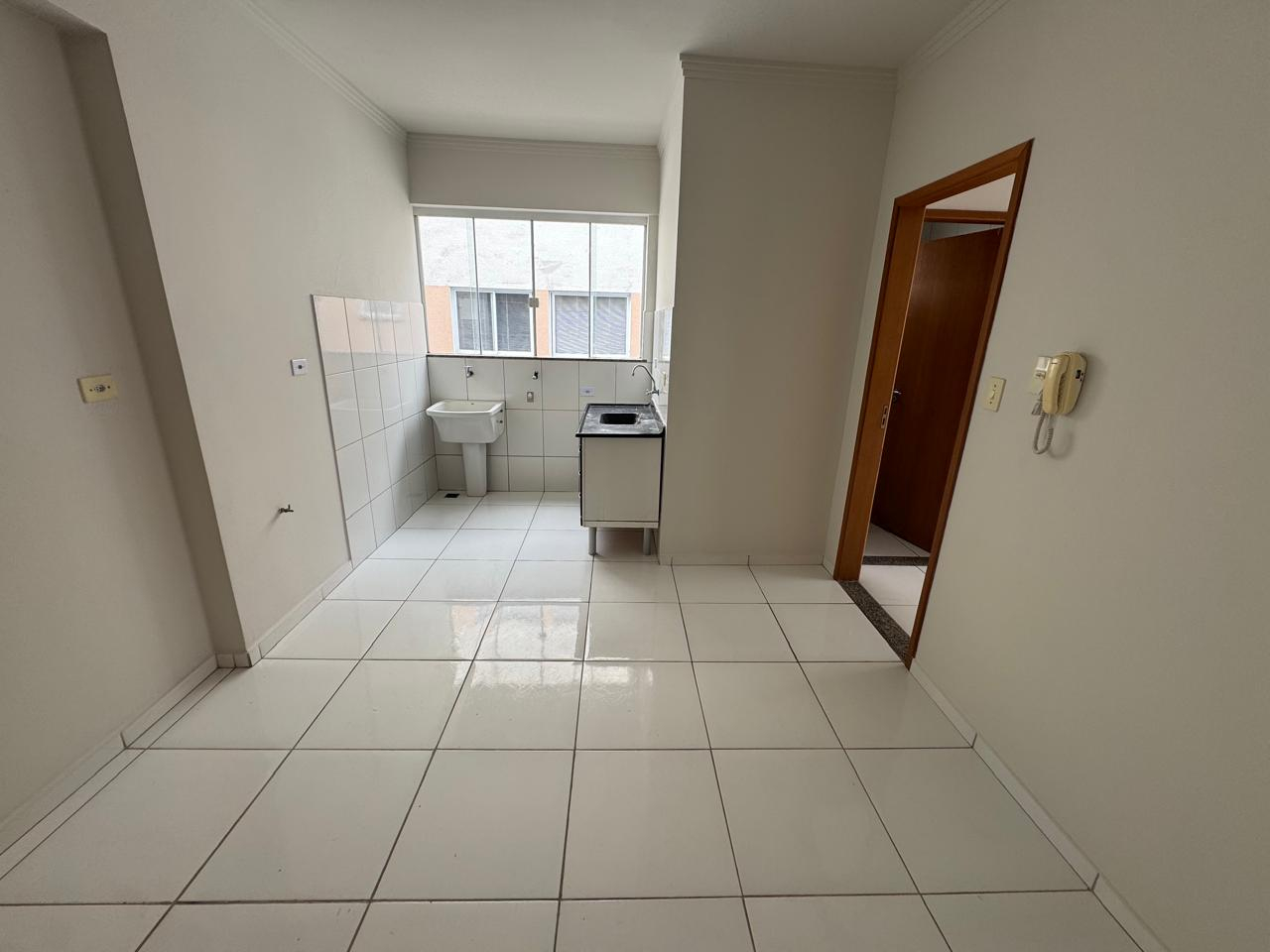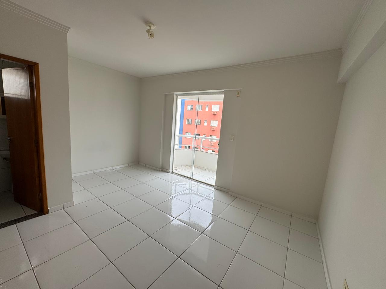 Apartamento de 1 suíte com sacada e sala/cozinha/lavanderia. 6º andar de frente (sol da manhã).